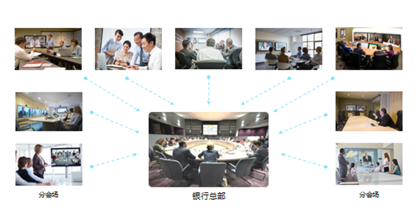 金融庞大体系设有的大量分行和营业部,由于无法面对面沟通,很多重要资料,很难确切传达和讲解,网络视频会议的分布式系统结构需要实现从员工桌面讨论、电话会议、到会议室正式会议等各种规模的应用。