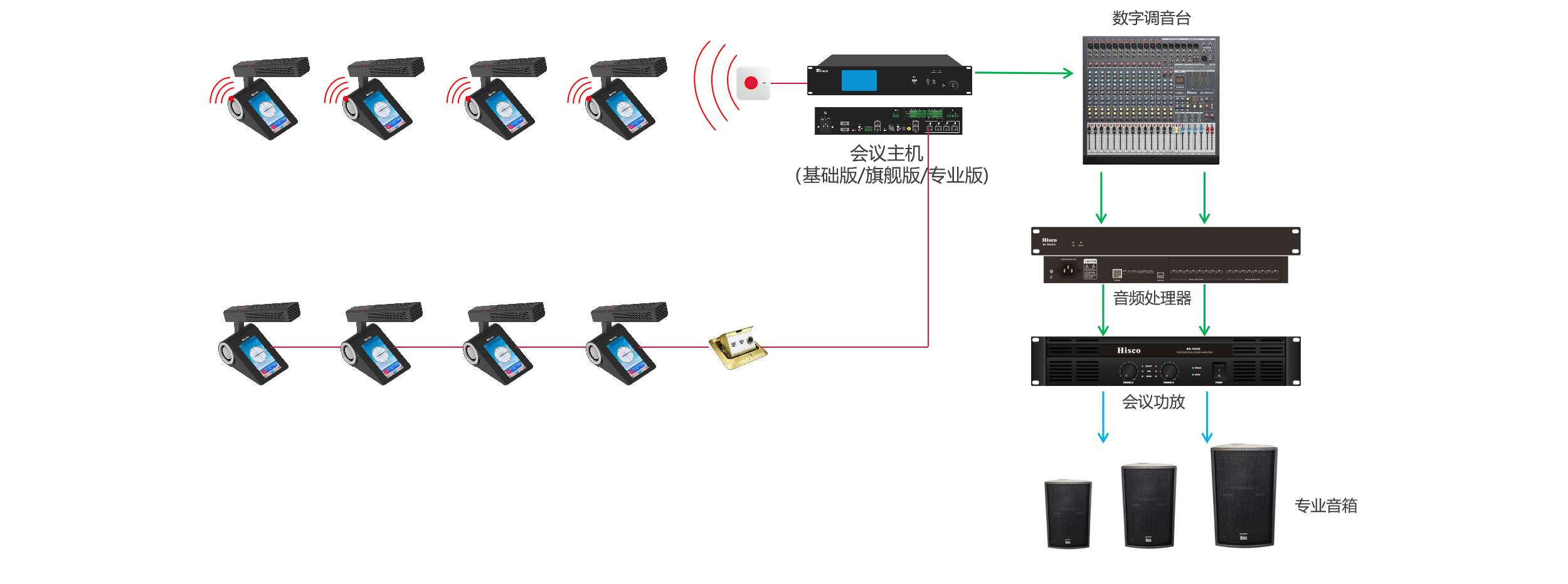 1.大容量接入 2.一键关闭所有无线单元 3.消防联动 4.摄像跟踪 5.发言模式