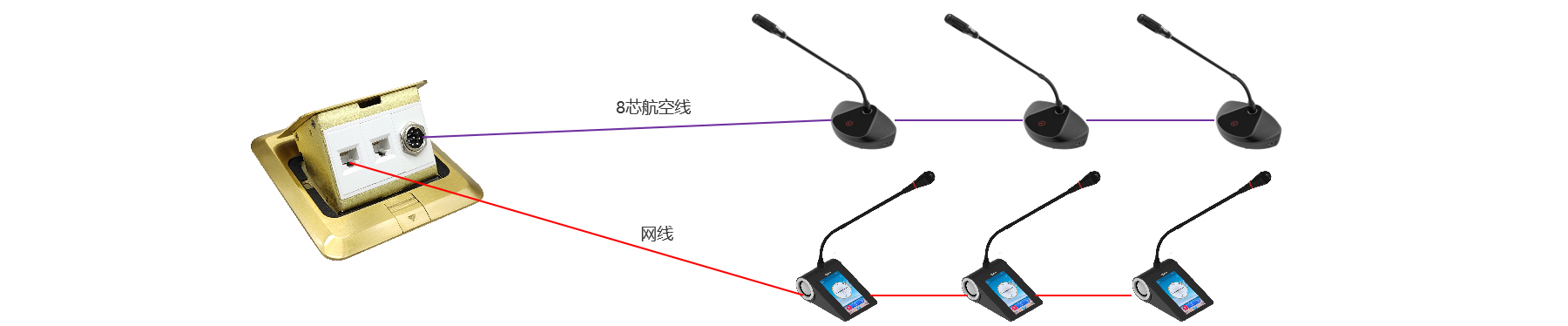 专用会议线缆有公母头之分,容易搞混。公/母头子比较大,难穿管且线缆不能剪断,否则影响传输音频品质。